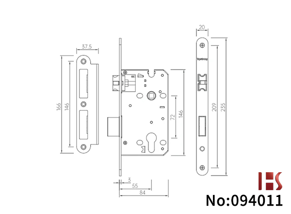 S7208A 锁体: 采用行业标准的55mm门边距 / 72mm锁芯距规格。核心的斜舌部分采用了特殊的高强度尼龙/静音复合材质包裹,极大降低了锁舌与扣板碰撞时的金属噪音。每一次关门,都是这一声沉稳的“咔哒”声,而非刺耳的撞击声。