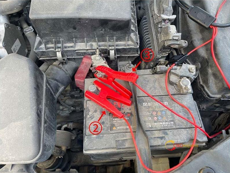 ①断开汽车电池的正极。
